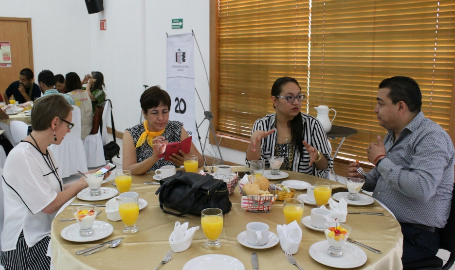 En el desayuno informativo para conmemorar el 62 aniversario del voto femenino en México estuvieron presentes el Consejero Presidente del IEE, Arturo Meraz González; consejeras y consejeros electorales: Saúl Eduardo Rodríguez Camacho, Gilberto Sánchez Esparza, Claudia Arlett Espino, Alonso Bassanetti Villalobos, María Elena Cárdenas Méndez y Julieta Fuentes Chávez, conmemoraron el 62 Aniversario del voto femenino en México.