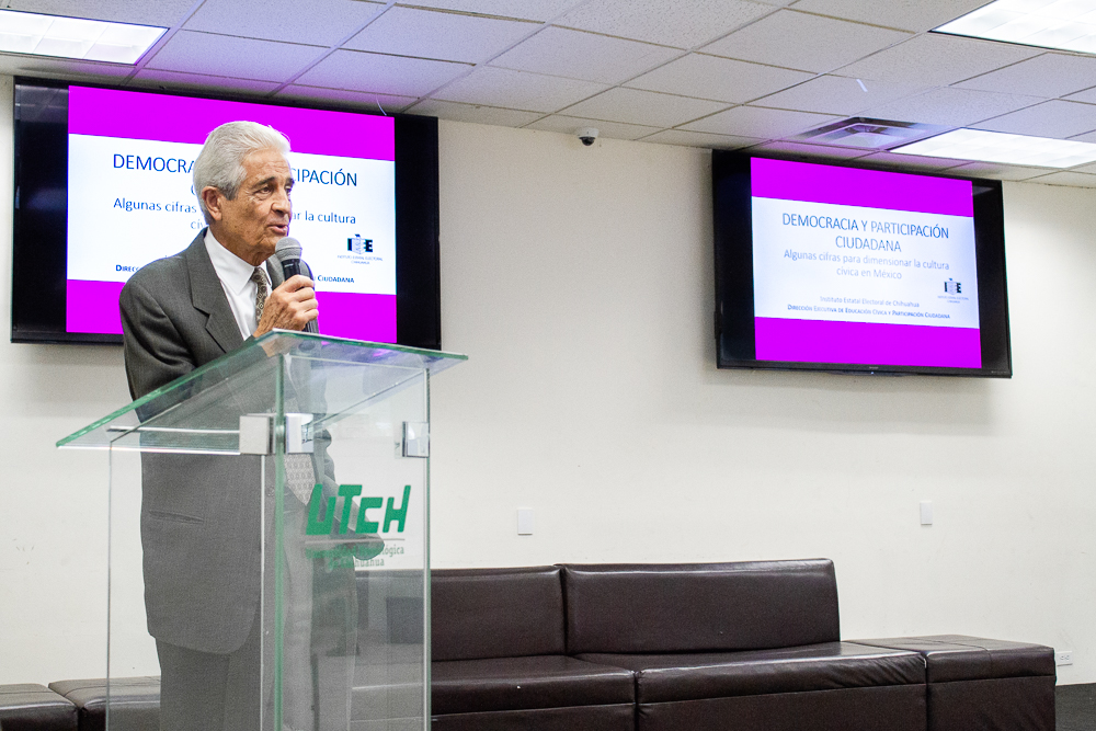 La actividad, organizada por la Dirección de Educación Cívica y Participación Ciudadana (DECyPC) del Instituto Estatal Electoral (IEE), se realizó la mañana de hoy con estudiantes de la Universidad Tecnológica de Chihuahua, bajo el lema “Democracia y participación ciudadana: ¿Participar o no participar?”