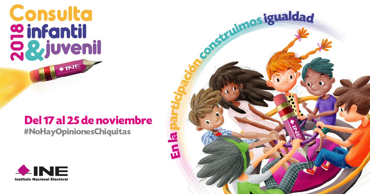 Chihuahua. - Con la instalación de 767 casillas en todo el estado y la meta proyectada de más de 124 mil participantes, el Instituto Nacional Electoral (INE) y el Instituto Estatal Electoral (IEE) convocaron a la Consulta Infantil y Juvenil 2018, la cual se realizará del 17 al 25 de noviembre, a fin de que niñas, niños y adolescentes ejerzan su derecho a participar y a expresarse en temas relacionados al ejercicio de los derechos humanos y la igualdad de género.
