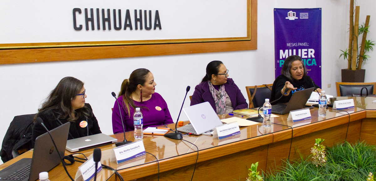 Chihuahua, Chih. - Un espacio de diálogo, de discusión y de mucho aprendizaje es lo que se creó en las Mesas Panel Mujer y Política, donde Martha González Rentería, Claudia Arlette Espino, Ana Fátima López Iturríos y Kiriaki Orpinel, cuatro expertas en género y derechos humanos, abordaron la participación política de las mujeres desde diferentes espacios y ámbitos.