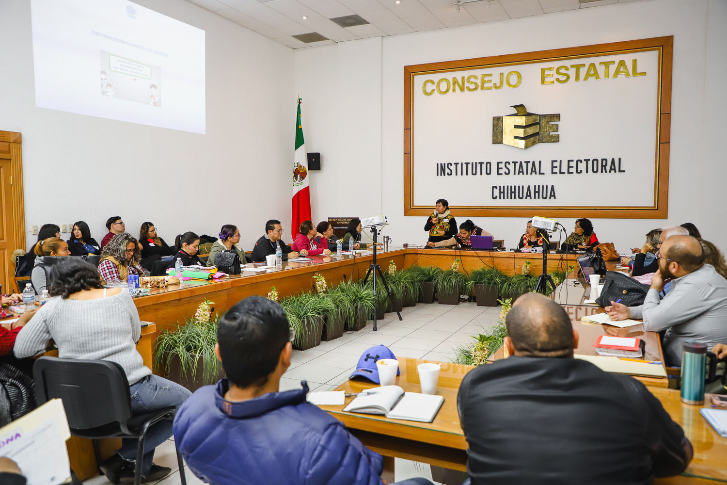En esta sesión de capacitación, realizada en las instalaciones del IEE, participaron docentes del SEyD y SEECh, así como el personal de la Coordinación de Educación Cívica del Instituto.