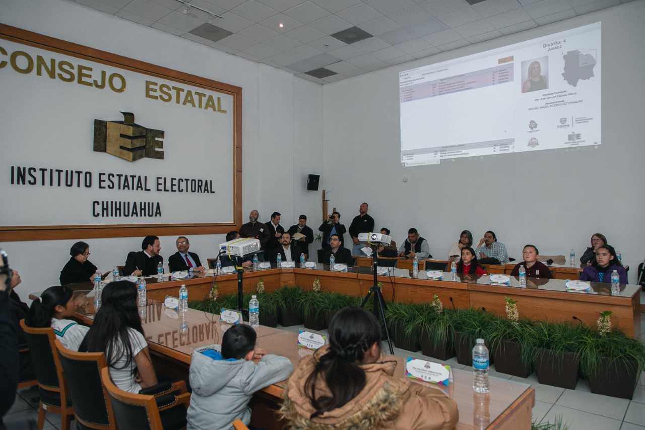 Chihuahua, Chih. - En una sala de sesiones del Instituto Estatal Electoral llena de alegría por la presencia de niñas y niños, se llevó a cabo la décimo octava insaculación para elegir a quienes ocuparán los cargos de diputadas y diputados infantiles por un día.