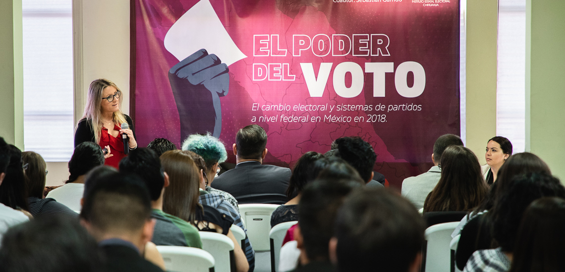El evento fue organizado por el Instituto Estatal Electoral de Chihuahua (IEE) y se desarrolló en la biblioteca de la Facultad de Ciencias Políticas y Sociales de la Universidad Autónoma de Chihuahua (UACH), donde la investigadora de la Universidad Nacional Autónoma de México (UNAM) tocó principalmente las elecciones del 1 de julio, tema que forma parte de una investigación en curso.