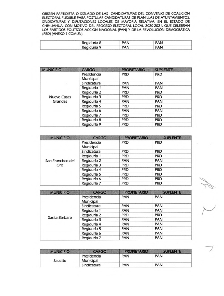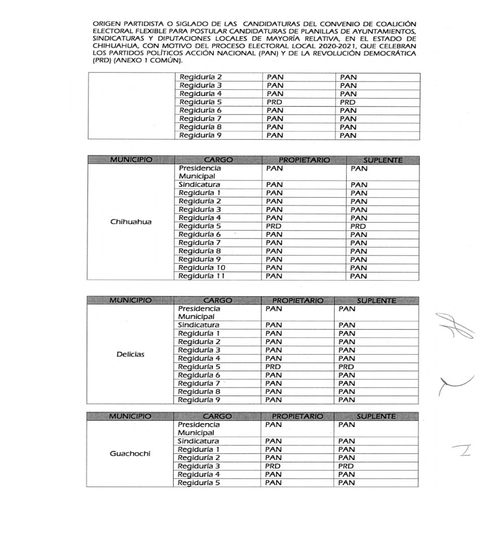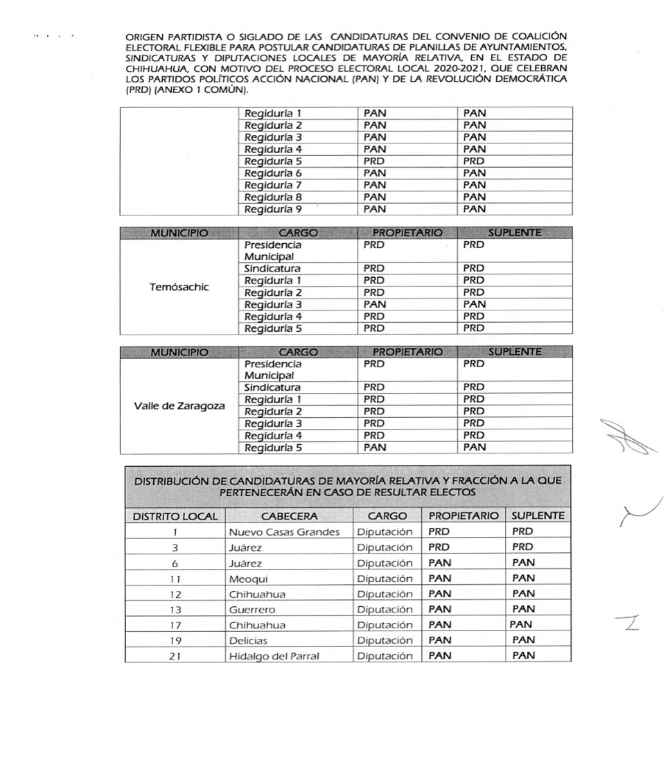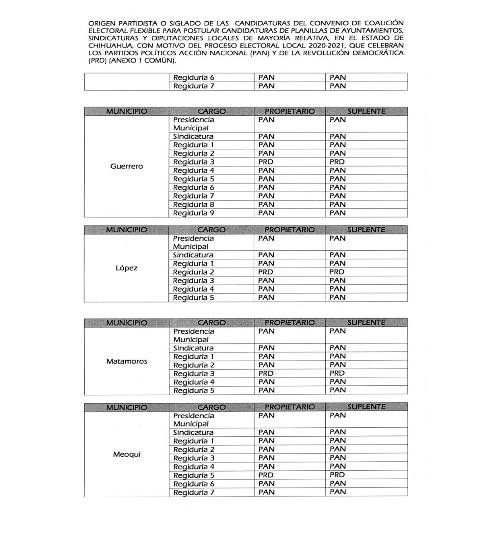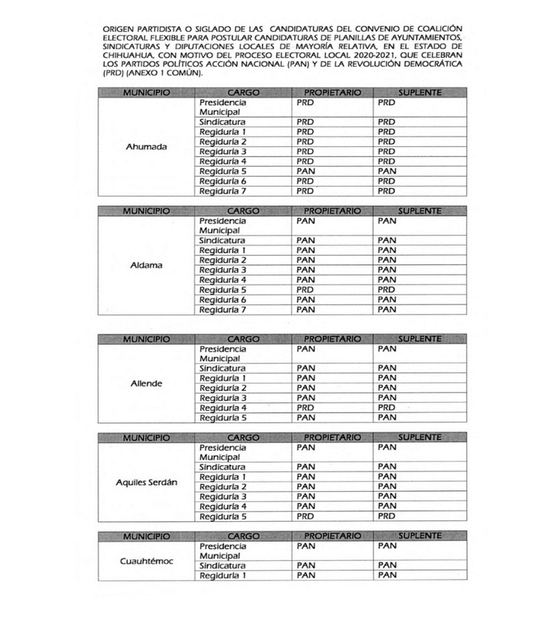 Dicha coalición postulará nueve diputaciones de mayoría relativa, 18 planillas para ayuntamientos y 18 para sindicaturas, quedando de la siguiente manera: