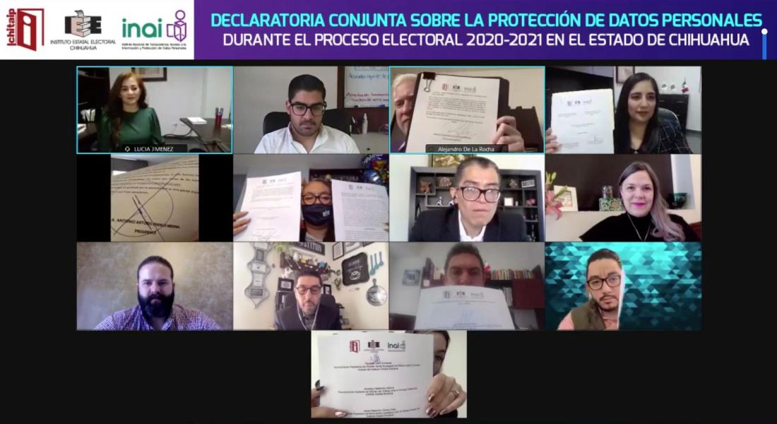 Chihuahua, Chih. — En atención al compromiso que se tiene con la seguridad de la ciudadanía chihuahuense, el Instituto Estatal Electoral de Chihuahua (IEE) y el Instituto Chihuahuense para la Transparencia y Acceso a la Información Pública (Ichitaip) firmaron la declaratoria conjunta sobre la protección de datos personales durante el proceso electoral 2020-2021 en el estado de Chihuahua.