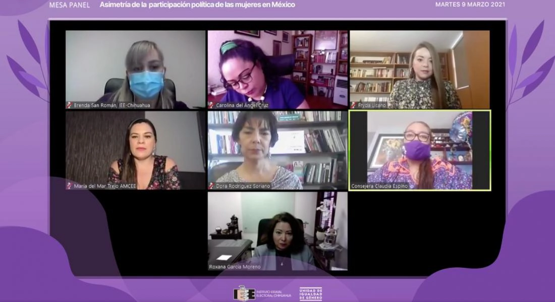 Chihuahua, Chih. — Un amplío análisis de las omisiones o afectaciones a los derechos políticos de las mujeres en el país fue presentado por cuatro expertas en el tema en la mesa panel denominada “Asimetrías de la Participación Política de las Mujeres en México”, evento organizado por el Instituto Estatal Electoral de Chihuahua (IEE), a través de la Unidad de Igualdad de Género, Derechos Humanos y No Discriminación, en el marco de las actividades para conmemorar el Día Internacional de la Mujer.