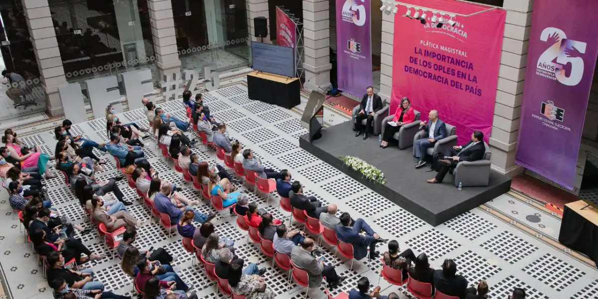 Chihuahua, Chih. — Como parte de las jornadas “Contigo en la Democracia”, que realiza el Instituto Estatal Electoral para celebrar su 25 aniversario, se llevó a cabo la plática magistral «La importancia de los OPLES en la democracia del país», donde expertos en el tema expusieron la relevancia del trabajo realizado por los Organismos Públicos Locales Electoral en la organización de elecciones confiables y coincidieron en que el modelo no está roto, funciona.