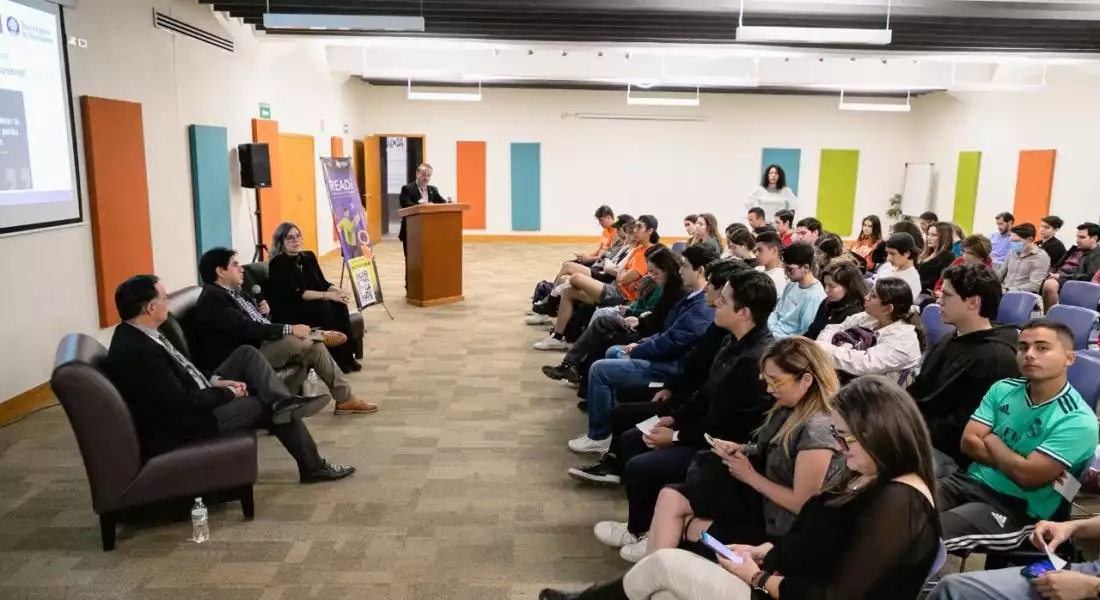 Chihuahua, Chih.— Georgina Ávila Silva, Víctor Yuri Zapata Leos y Ricardo Zenteno Fernández, consejera y consejeros electorales del Instituto Estatal Electoral de Chihuahua (IEE) dialogaron con jóvenes del Tec de Monterrey campus Chihuahua sobre democracia y participación ciudadana.