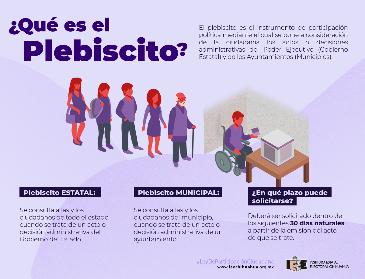 El plebiscito es un Instrumento de Participación Política mediante el cual se someten a consideración de la ciudadanía los actos o las decisiones administrativas del Poder Ejecutivo del Estado o de los Ayuntamientos.